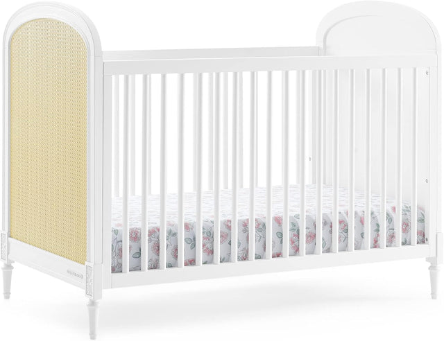 Delta Children Madeline 4-in-1 Convertible Crib Woven Cane Mesh Panels Bianca White/Textured Almond