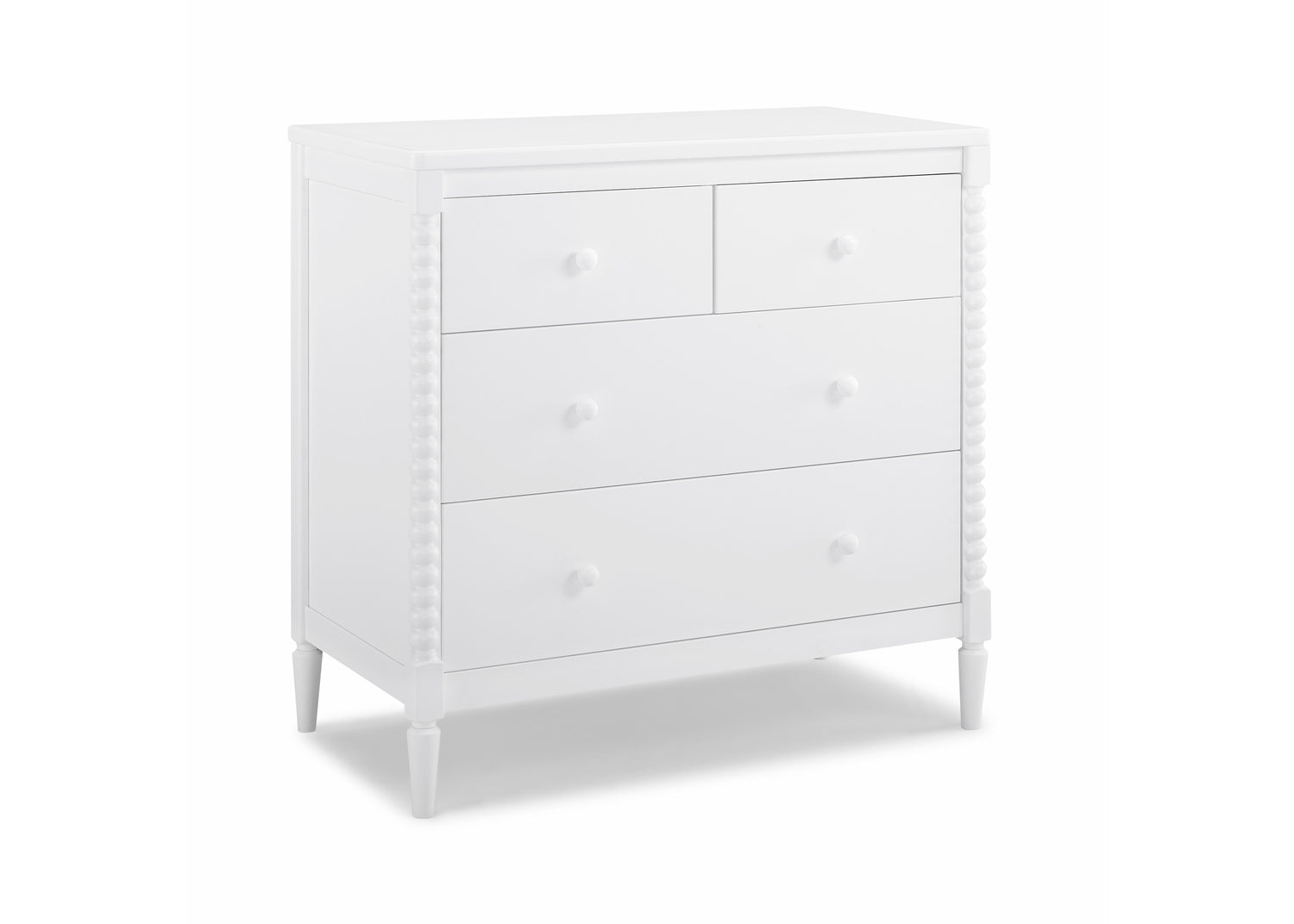 A modern take on vintage-inspired Jenny Lind furniture, the Saint 3 Drawer Dresser with Changing Top and Interlocking Drawers by Delta Children is adorned with solid wood turned posts. A timeless option for your baby’s nursery, it can be styled traditionally, modernly or eclectically, to effortlessly create a look all your own. Designed to grow with your little one, the included changing topper can be easily removed once your child no longer needs a changing table. For your child’s safety, this dresser is outfitted with an interlocking drawer system that limits the number of drawers that can be opened at one time.