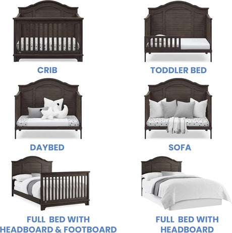 Delta Children Simmons Kids Foundry 6-in-1 Convertible Crib, Rustic Grey/Matte Black
