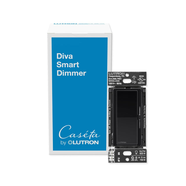 Introducing the Diva smart dimmer switch for Caséta smart lighting. Lutron's #1 dimmer is now smart and works with your existing Caséta products. Match existing Diva LED+ dimmer switches in your home with the same elegant, recognized paddle style, updated to match existing Caséta products with an LED-backlit light bar. Use the smart hub to connect your Diva smart dimmer switch to more leading smart home devices - including Alexa, Apple Home, Google Home, Ring, and Sonos - than any other smart lighting control brand. Not only does the smart hub unlock smart control and device integration - but it also doesn't use Wi-Fi to control your lights. Stay connected even when your Wi-Fi goes down and stop slowing your internet speed with more devices. Flexible Wiring Options: Create a new 3-way or replace an existing one with the Diva smart dimmer switch. Pair a Pico remote and bracket to your dimmer switch and mount the Pico/bracket on almost any surface - no cutting holes or pulling wire required (Pico and bracket sold separately). Match the Diva smart dimmer switch's paddle-style aesthetic with the Pico paddle remote (PJ2-P2B-GWH); only with the Diva smart dimmer switch, the Pico paddle remote will activate the Diva smart dimmer switch's preset light level with one tap. The Diva smart dimmer switch has flexible wiring options and does not require a neutral wire. Includes (1) Diva smart dimmer switch; coordinating wallplate and other accessories sold separately.