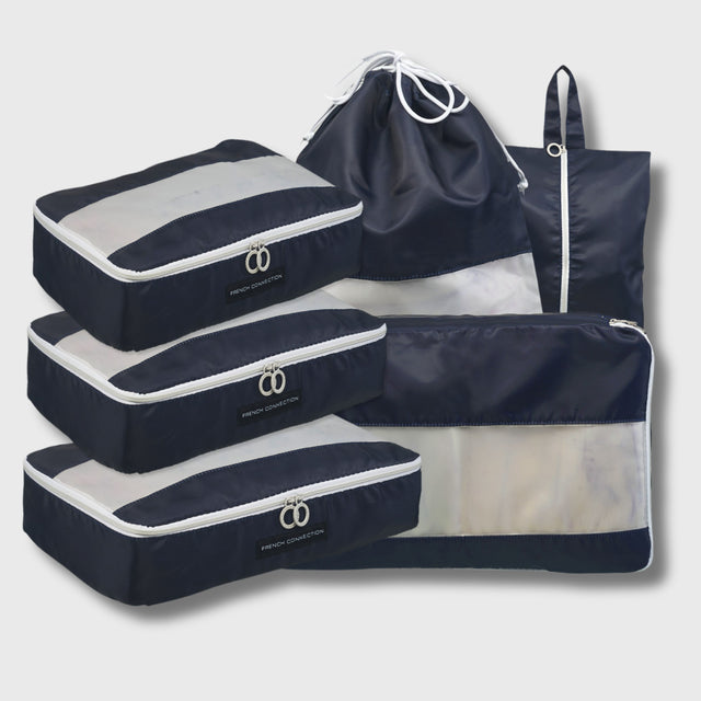 About the French Connection 6pc Packing Cube Set - Travel Storage Set for Luggage in Marine Blue